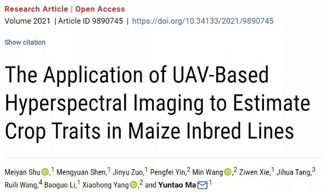 Plant Phenomics | 無(wú)人機(jī)高光譜影像在玉米自交系作物性狀估算中的應(yīng)用