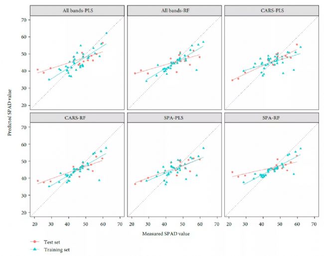 圖7 基于不同波段組合的SPAD反演比較