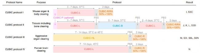 3. Susaki EA, Tainaka K, Perrin D, Yukinaga H, Kuno A, Ueda HR. Advanced CUBIC protocols for whole-brain and whole-body clearing and imaging. Nat Protoc. 2015 Nov;10(11):1709-27.