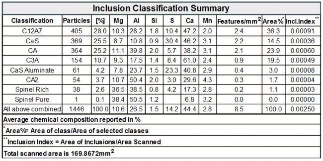 Inclusion classification: Spinel and CaAl Oxide inclusions