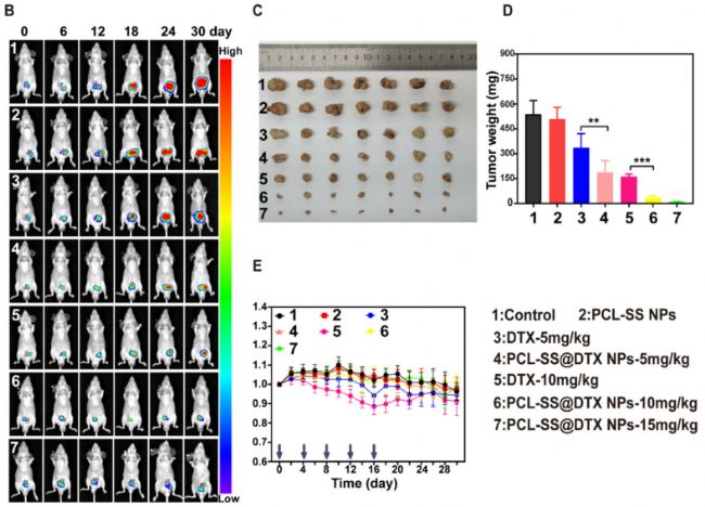 近日,中山大學(xué)附屬第七醫(yī)院腎泌尿外科中心龐俊教授課題組針對腫瘤細胞中豐富的ROS和GSH,成功地設(shè)計并開發(fā)了一種獨特的雙響應(yīng)納米載體(PCL-SS)用于DTX的傳遞和前列腺癌的治療。負載DTX的PCL-SS納米顆粒不僅在正常生理環(huán)境中穩(wěn)定,而且能迅速觸發(fā)前列腺癌細胞釋放DTX。體外實驗表明,PCL-SS@DTX納米顆粒具有良好的生物相容性,對前列腺癌細胞有較強的細胞毒作用,能抑制細胞遷移和侵襲,并誘導(dǎo)細胞凋亡。在荷前列腺癌小鼠體內(nèi),PCL-SS@DTX納米顆?稍谠荒[瘤部位蓄積,通過抑制前列腺癌細胞增殖和誘導(dǎo)細胞凋亡而顯著抑制腫瘤生長,且對主要器官無明顯損傷。有理由相信,這種雙響應(yīng)性納米給藥系統(tǒng)可能為前列腺癌化療提供一種有前途的治療選擇。相關(guān)成果已發(fā)表在國際知名期刊《Materials Science and Engineering: C》。