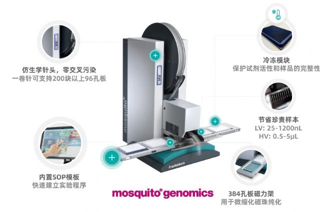 它正在改變基因組學(xué)實(shí)驗(yàn)室的工作方式——mosquito能夠精確地在傳統(tǒng)實(shí)驗(yàn)體積的一小部分(通常不到1/10)建立反應(yīng)體系,從而大幅減少試劑成本,提高檢測通量。