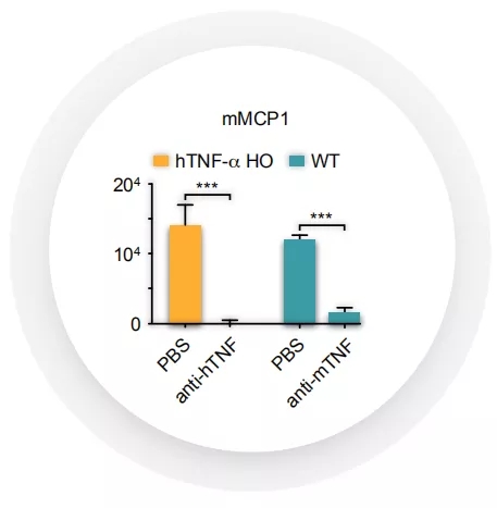 圖4. hTNF-α誘導(dǎo)hTNF-α小鼠體內(nèi)包括mMCP1在內(nèi)的多種細(xì)胞因子的表達(dá)。