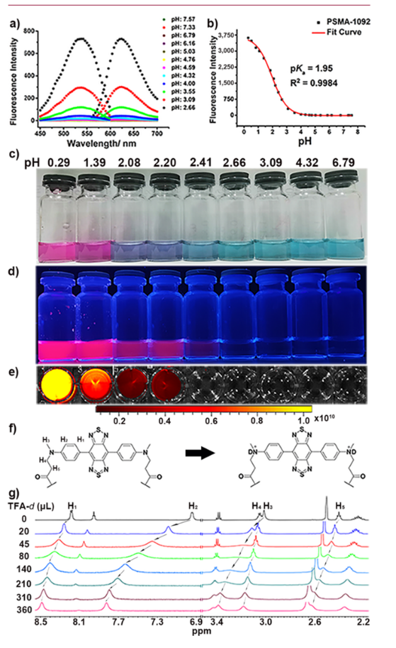 (f) PSMA-1092在酸性環(huán)境中可能的質(zhì)子化機(jī)制。