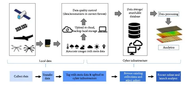 Figure 2: UAS workflow pipeline: data collection, transfer, upload, storage, and analytics.