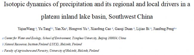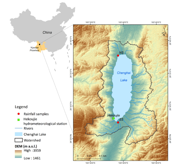 基于此,為了填補(bǔ)研究空白,來自清華大學(xué)、芬蘭自然資源研究所(LUCK)和赫爾辛基大學(xué)農(nóng)林學(xué)院的研究者在程海湖流域(26°27′-26°38′N,100°38′-100°41′E)進(jìn)行了相關(guān)研究,旨在(1)探討驅(qū)動(dòng)雨季同位素變化的大規(guī)模對(duì)流活動(dòng)和水源的時(shí)間動(dòng)態(tài);(2)揭示導(dǎo)致湖北岸和南岸降水同位素組成空間差異的潛在機(jī)制。