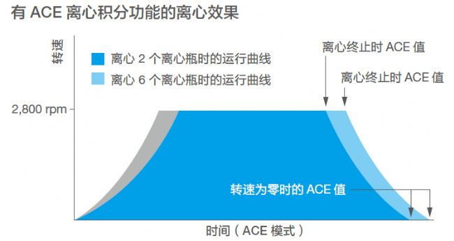 更重要的是,除了控制系統(tǒng)全新升級之外,新款離心機(jī)還將用于落地離心機(jī)上的ACE離心效果積分功能應(yīng)用于臺式離心機(jī)。該功能可以對各種因素所導(dǎo)致(如裝樣量不同)的細(xì)微加速時(shí)間的差異,通過自動調(diào)整離心運(yùn)行時(shí)間進(jìn)行補(bǔ)償以保證相同的離心效果。