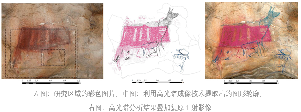 由于巖畫、壁畫大多存在于天然洞穴或巖石上,任何外界條件均有可能導(dǎo)致其消失或惡化,如地質(zhì)地貌變化引起的滑坡坍塌、水蝕風(fēng)化、細菌真菌等生物危害。因此,巖畫、壁畫的保護、復(fù)刻及數(shù)字化等環(huán)節(jié)都至關(guān)重要。西班牙的研究學(xué)者們利用高光譜成像技術(shù)對埃爾卡斯蒂略洞穴中的壁畫進行了研究,該洞穴壁畫中包含大量的動物形象,如野牛、山羊、鹿、馬等,于2008年被聯(lián)合國教科文組織宣布為世界遺產(chǎn)。