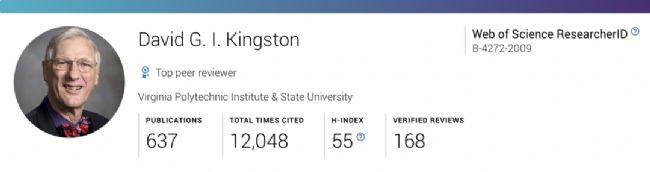 大衛(wèi)·金士頓教授從1960年至2020年間對(duì)天然化合物進(jìn)行了長(zhǎng)達(dá)60年的研究,累計(jì)被引1萬(wàn)2千多次,H指數(shù)55;仡櫵难芯可模瑹o(wú)處不是對(duì)天然化合物研究深深的熱愛(ài)。同時(shí),也折射了天然化合物研究領(lǐng)域的發(fā)展以及研究方法進(jìn)步的脈絡(luò)。