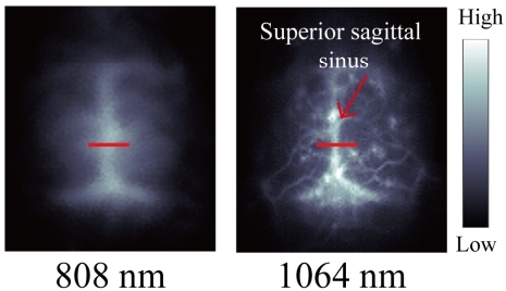 圖3:FD-1080在不同激發(fā)波長(zhǎng)下的小鼠腦部血管成像效果(1300 nm長(zhǎng)通濾光片)