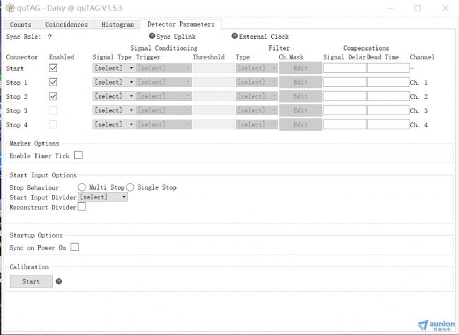6、在Histogram標(biāo)簽界面如下圖,在此圖中可以測量start-stop模式下的時間信息、計數(shù)信息,以及start-(multi)stop模式下的時間、計數(shù)信息;
