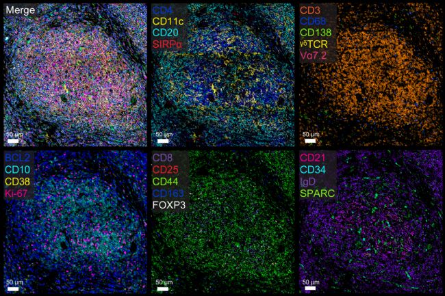 圖5 淋巴瘤樣本IBEX技術(shù)22色標(biāo)記成像