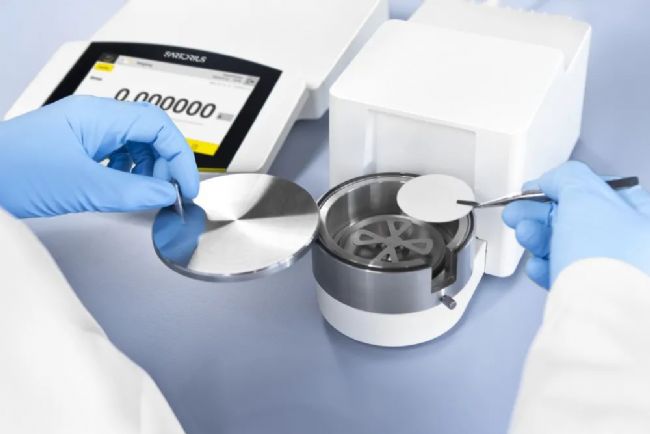 Cubis® II支持不同應(yīng)用,其中消除靜電電荷對(duì)于稱量濾膜上的極少量顆粒物至關(guān)重要(此處使用專用支架YSH30,用于直徑高達(dá)150mm的濾膜)。
