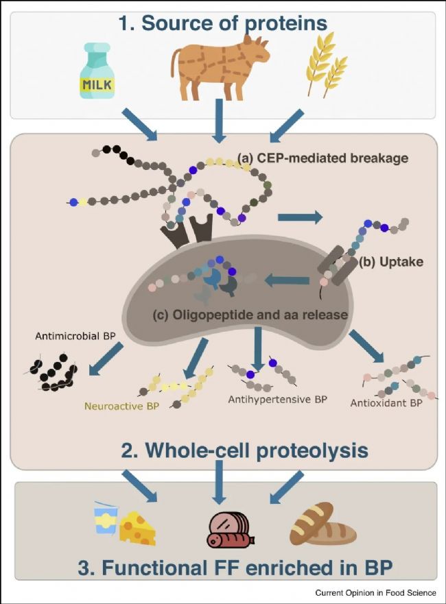 乳酸菌的蛋白水解活性概述,在食品發(fā)酵過程中將肉類、乳制品和植物來源的蛋白轉(zhuǎn)換為生物活性肽: