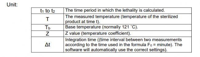 1. 虹科ELLAB的溫度驗(yàn)證軟件ValSuite自帶滅菌值計(jì)算功能,默認(rèn)自動(dòng)計(jì)算F0。以下是計(jì)算公式: