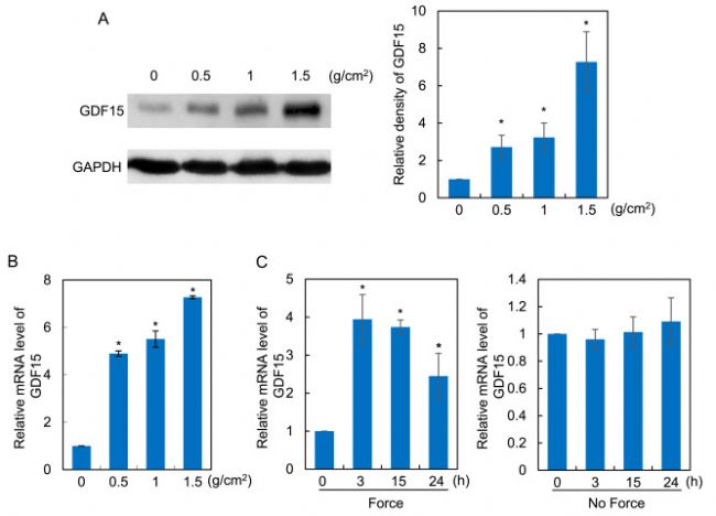 因此,這些數(shù)據(jù)表明 GDF15 在人 PDLCs 中被壓力轉(zhuǎn)錄上調(diào)。