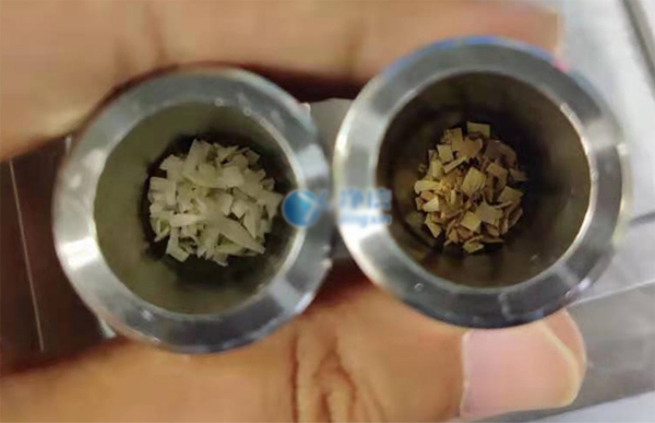 上圖為1分鐘的研磨效果,已經(jīng)完全研磨至粉末。效果非常好,蠶繭研磨一定要凍液氮,因為蠶繭韌性極高,常溫研磨難度極高,之前老師了解過刀式研磨儀損耗也多,而且產(chǎn)熱容易變質(zhì),后續(xù)老師還會做到更多生物兼容性材料如滌綸、ps、pcl等等,凈信研磨儀都完全能勝任,經(jīng)過多次了解和對比所以老師們選用凈信研磨儀代替人工處理。效率高,效果好,完美解決了老師的研磨問題。