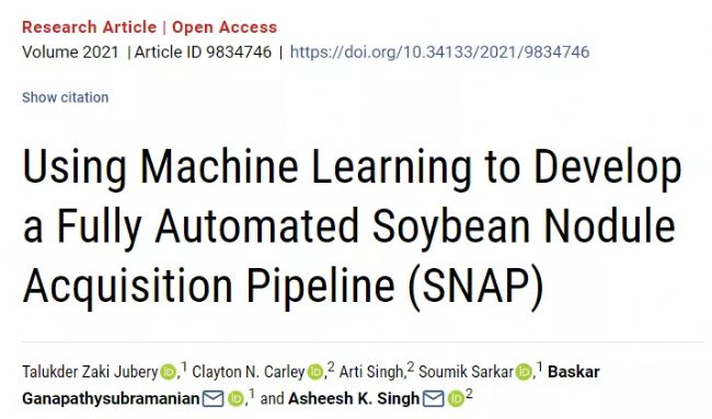 近日,Plant Phenomics 在線發(fā)表了題為Using Machine Learning to Develop a Fully Automated Soybean Nodule Acquisition Pipeline (SNAP)的研究論文。