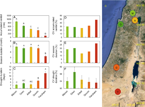 調(diào)節(jié)蒸騰速率是植物適應(yīng)不確定環(huán)境的重要組成部分。氣孔關(guān)閉是對(duì)嚴(yán)重干旱最常見的反應(yīng)。通過關(guān)閉氣孔,植物減少蒸騰作用,從而提高在干燥條件下的生存幾率。在輕度至中度干旱條件下,有幾種可能的蒸騰模式可以平衡生產(chǎn)力損失的風(fēng)險(xiǎn)和水分流失的風(fēng)險(xiǎn)。本文假設(shè)與來自環(huán)境較為穩(wěn)定的生態(tài)型相比,在以不穩(wěn)定降水模式為特征的環(huán)境中進(jìn)化的生態(tài)型植物生將表現(xiàn)出更廣泛的蒸騰調(diào)節(jié)模式以及其他數(shù)量生理特征(QPT)。本文調(diào)查了來自以色列不同地點(diǎn)(B1K 集合)的5種野生大麥(Hordeum vulgare ssp. spontaneum),以及一個(gè)馴化品系(cv. Morex),這些地點(diǎn)年降雨量從100到900mm不等。在灌溉良好的條件下、干旱脅迫下和干旱恢復(fù)期間測(cè)量了這些種質(zhì)的幾個(gè)QPT和形態(tài)特征。結(jié)果揭示了降水確定性條件與QPT可塑性之間的相關(guān)性。具體而言,發(fā)現(xiàn)來自穩(wěn)定環(huán)境(非常潮濕或非常干燥的地方)的種質(zhì)比來自降雨量不太可預(yù)測(cè)地區(qū)的種質(zhì)在其水分平衡調(diào)節(jié)方面承擔(dān)更大的風(fēng)險(xiǎn)。值得注意的是,一旦恢復(fù)灌溉,風(fēng)險(xiǎn)較小的基因型恢復(fù)得比風(fēng)險(xiǎn)較大的基因型更快。本文討論了環(huán)境、多態(tài)性、生理可塑性和適應(yīng)性之間的關(guān)系,并提出了蒸騰速率可塑性與種群多樣性負(fù)相關(guān)的一般風(fēng)險(xiǎn)承擔(dān)模型。
