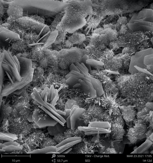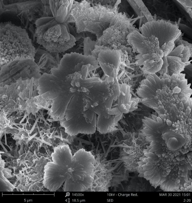 借助掃描電鏡的觀察,我們才發(fā)現(xiàn),原來這些看起來不起眼的混凝土,也曾綻放過美麗。