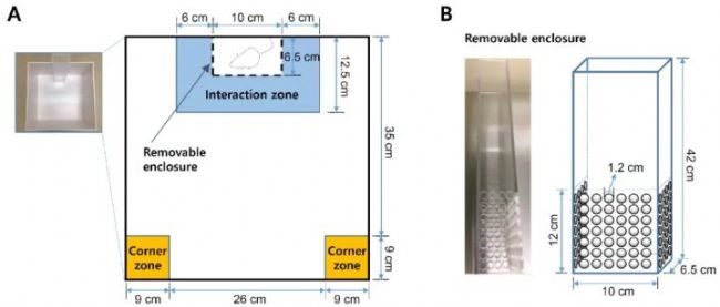 - 對照組:選取2只同年齡段C57BL/6J小鼠,參照實驗組的實驗(可以理解為將實驗組中的CD-1小鼠替換為對照C57BL/6J小鼠),每天更換不同的實驗籠,連續(xù)重復此操作10天。注意事項:實驗過程應密切觀察,避免兩只小鼠發(fā)生肢體沖突。10天的社交挫敗實驗結束后,將所有的受試C57BL/6J小鼠單獨飼養(yǎng),24小時后(或根據(jù)實驗設計時間)進行后續(xù)的社交檢測階段。