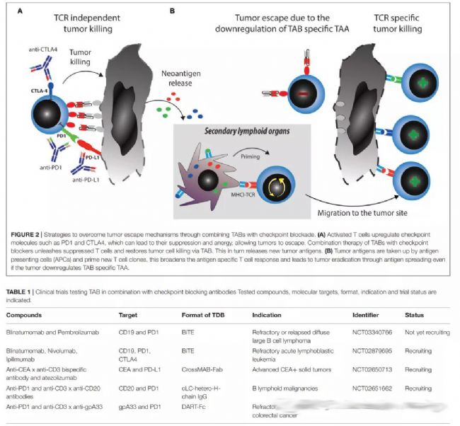Kobold S, Pantelyushin S, Rataj F, Vom Berg J. Rationale for combining bispecific T cell activating antibodies with checkpoint blockade for cancer therapy. Front Oncol 2018; 8: 285.