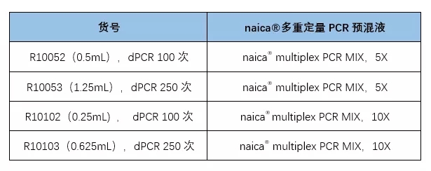 表1 naica®multiplex PCR MIX貨號(hào)及規(guī)格