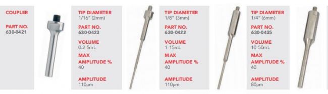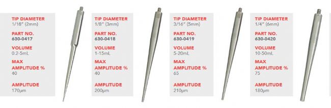 因此,我們建議每使用5或6個(gè)小時(shí)后檢查一次探頭端,必要時(shí)用拋光布或者砂紙進(jìn)行拋光。這種保養(yǎng)方式可以反復(fù)進(jìn)行,直到把振幅設(shè)定為100,探頭在樣品外,功率表的讀數(shù)小于15瓦特(小探頭小于5瓦特),說(shuō)明探頭需要更新了。