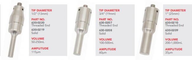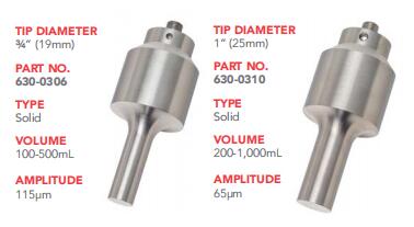 美國(guó)Sonics超聲波細(xì)胞破碎儀有多種探頭可選,以滿足用戶的多種需要。探頭是一種把變頻器所產(chǎn)生的機(jī)械振動(dòng)的振幅增加的半波長(zhǎng)工具。它包括兩個(gè)部分,每個(gè)部分具有不同的橫截面面積。在其諧振頻率驅(qū)動(dòng)時(shí),探頭繞其中心縱向膨脹和收縮。螺紋探頭通過(guò)連接在螺紋結(jié)點(diǎn)(無(wú)活動(dòng)區(qū)域)上的配件發(fā)生縱向振動(dòng)。探頭直徑越小產(chǎn)生的氣蝕強(qiáng)度越大,但釋放的能量處理的區(qū)域較小。相反,探頭直徑越大強(qiáng)度越低,但釋放的能量處理的區(qū)域和體積較大。與標(biāo)準(zhǔn)探頭具有相同直徑的高強(qiáng)度探頭可產(chǎn)生更高的強(qiáng)度,通常建議應(yīng)用于難破碎的樣品。探頭由Ti-6AL-4V鈦合金制成,可高溫高壓滅菌,具有拉伸強(qiáng)度高,聲學(xué)特性良好,高耐腐蝕,低毒性和優(yōu)良耐氣蝕等特性。