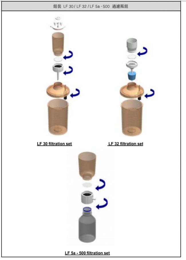 1. 漏斗蓋、過濾杯、過濾基座、 廢液抽取轉(zhuǎn)接蓋、接收瓶蓋、防溢保護(hù)裝置與接收瓶為耐高溫