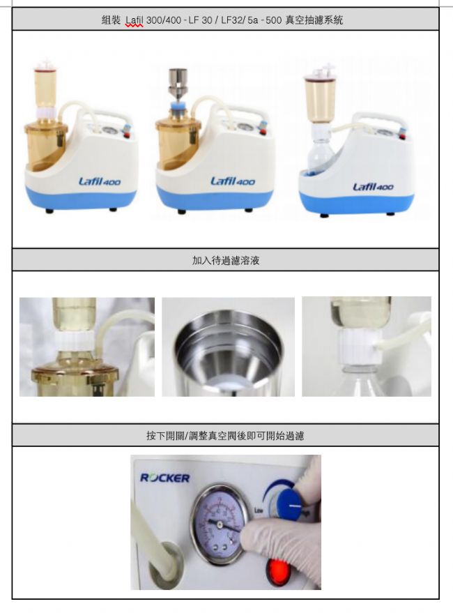⚫ 過濾瓶組(包含防溢保護(hù)裝置)適用大部份低濃度之酸鹼有機(jī)溶液,並非所有溶劑。