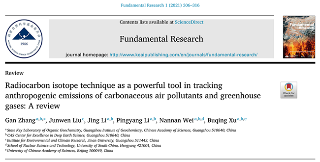 以上內(nèi)容節(jié)選自期刊Fundamental Research 2021年第3期發(fā)表的文章 “G. Zhang, J.W. Liu, J. Li, et al., Radiocarbon isotope technique as a powerful tool in tracking anthropogenic emissions of carbonaceous air pollutants and greenhouse gases: A review, Fundamental Research 1(3)(2021)306-316 ”