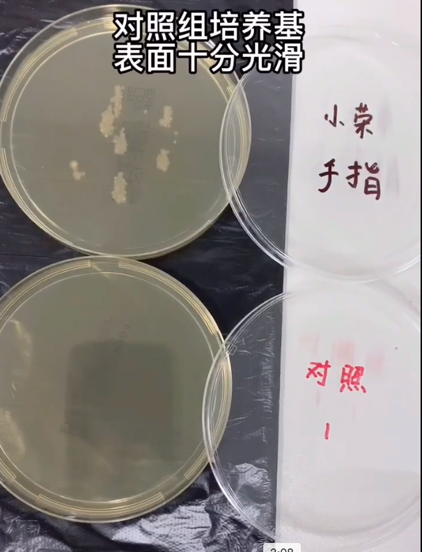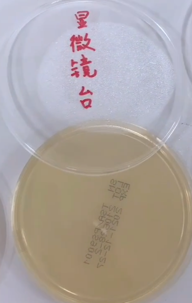 為避免無陽性對照,我們邀請技術同事將手指點涂在培養(yǎng)基上進行陽性對照實驗。兩天后可明顯觀察到菌落的生成。