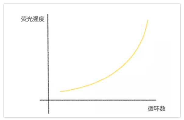 在引物、模板、緩沖液、酶等都充足的理想狀態(tài)下,PCR擴(kuò)增產(chǎn)物理論上是呈2的倍數(shù)增長的,所以我應(yīng)該是長這個樣子的: