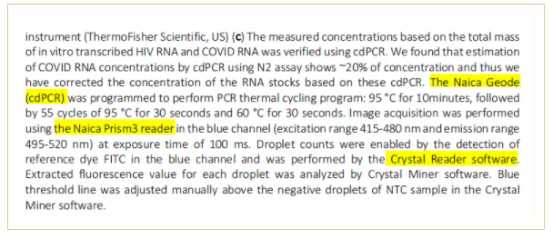 通過開發(fā)一種新的工作流程,同時(shí)定量艾滋病毒載量和檢測(cè)SARS-CoV-2。文中使用naica®微滴芯片數(shù)字PCR系統(tǒng)對(duì)RNA濃度進(jìn)行精準(zhǔn)定量,用于新方案的評(píng)估。