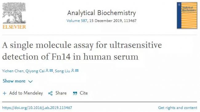 受體蛋白Fn14是腫瘤壞死因子(TNF)超家族中的最小成員,在一些疾病中,如癌癥、自身免疫性疾病、腎臟疾病等中會過度表達,因此常被作為蛋白生物標(biāo)記物用來監(jiān)測和指示生理和病理進展。來自湖南大學(xué)的研究者們基于Simoa平臺,開發(fā)了一種用于檢測Fn14的超靈敏分析法。他們共篩選了44對不同的抗體對,試劑盒的檢測范圍為1.26 pg/mL~3683 pg/mL,檢測下限為0.32 pg/mL,遠(yuǎn)低于市售的傳統(tǒng)ELISA試劑盒,且分析全程自動化,只需大約一個小時即可完成。