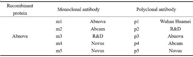所用抗體對和標(biāo)準(zhǔn)品信息