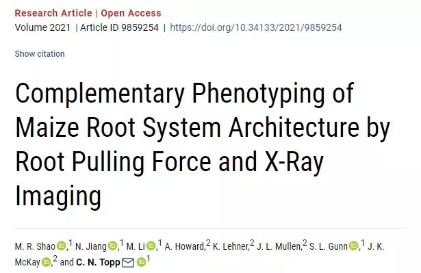 近日,Plant Phenomics在線發(fā)表了題為Complementary Phenotyping of Maize Root System Architecture by Root Pulling Force and X-Ray Imaging的研究論文。