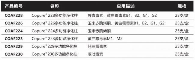 “一步凈化、簡單高效”,這就是Copure®系列多功能凈化柱的最大特點。目前,我們已建立了相關(guān)的產(chǎn)品線,為真菌毒素快速檢測提供專業(yè)解決方案,歡迎大家來訂購~