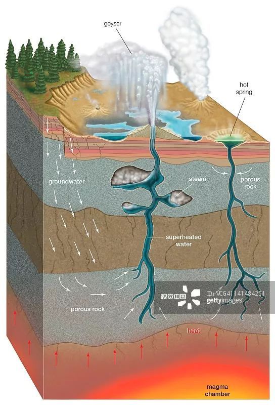 天然溫泉形成的條件:一是地下必須有熱水存在的空間,二是必須有靜水壓力差,導(dǎo)致熱水上涌,三是必須有深長裂隙供熱水通達(dá)地面。
