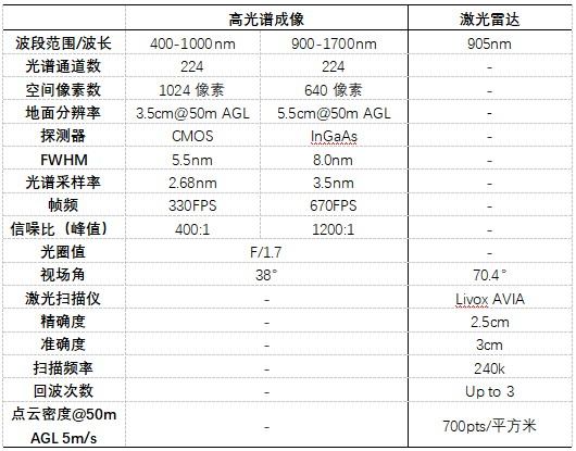 3.50m高單樣線飛行作業(yè)可自動采集形成寬度36m的樣帶高光譜成像大數(shù)據(jù)、