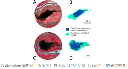 研究結(jié)果表明,高光譜和 LiDAR 數(shù)據(jù)的整合可以成功消除了陰影等影響,大大提高小面積水體的識別能力,這對于棲息地的水體動態(tài)監(jiān)測及生態(tài)恢復(fù)與保護(hù)至關(guān)重要。