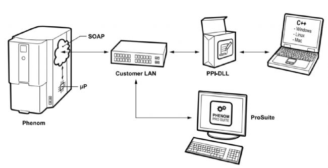 對于具有一定編程能力的用戶,可以使用飛納編程界面(Phenom Programming Interface,簡稱 PPI),便可以控制掃描電鏡電鏡的任何部分(包括移動臺、導(dǎo)航相機(jī)、電鏡控制等)。PPI 廣泛支持 C++、Python、NET 等語言,支持 Windows、Linux、macOS 等操作系統(tǒng),支持包括從簡單的產(chǎn)量增強(qiáng)腳本,到復(fù)雜的全自主自動化流水腳本,具有多樣性。