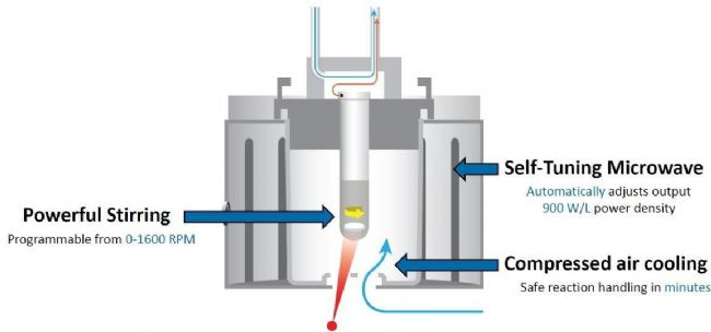 如圖3 所示,樣品溫度由獲得專利的測量, 原位攪拌確保熱量均勻分布在樣品中,反應(yīng)后可在幾秒鐘內(nèi)冷卻樣品,以便為進(jìn)一步處理或分析做好準(zhǔn)備。