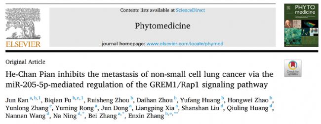 文章標(biāo)題:He-Chan Pian inhibits the metastasis of non-small cell lung cancer via the miR-205-5p-mediated regulation of the GREM1/Rap1 signaling pathway
