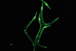 圖5:線蟲,GFP在神經(jīng)系統(tǒng)中的表達(dá)。