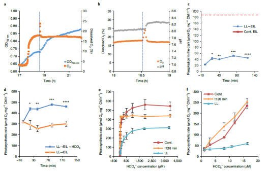 Treves等人在多組學分析揭示沙漠綠藻的極端光照抗性研究中發(fā)現(xiàn),在兩倍全日照輻射下,小球藻的表現(xiàn)遠超我們的預期,說明目前我們對于植物光合作用機制如何運行以及光合功能上限的了解還不夠全面。極端光輻射下,小球藻獨特的光系統(tǒng)II功能特性使其能夠維持高速率的光合和生長。研究者通過FMT150藻類培養(yǎng)與在線監(jiān)測系統(tǒng),精確控制小球藻的生長環(huán)境,并實時監(jiān)測小球藻的動態(tài)變化。