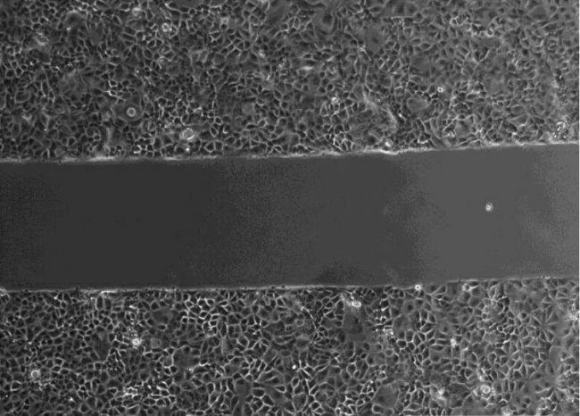 在顯微鏡下選取能同時(shí)看到“劃痕”和兩邊細(xì)胞的視野進(jìn)行成像,“劃痕”的方向最好是水平或者垂直。