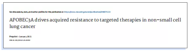 參考文獻(xiàn):H Isozaki, Abbasi A , Nikpour N , et al. APOBEC3A drives acquired resistance to targeted therapies in non-small cell lung cancer. 2021.
