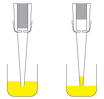 左:空氣正壓式移液器工作方式
